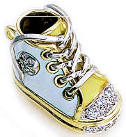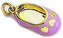 pink or baby blue, this enamel shoe has a beautiful diamond, rimmed